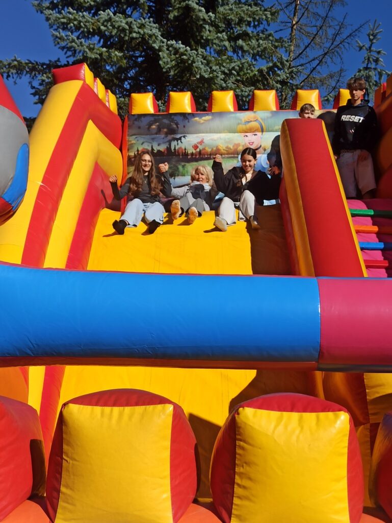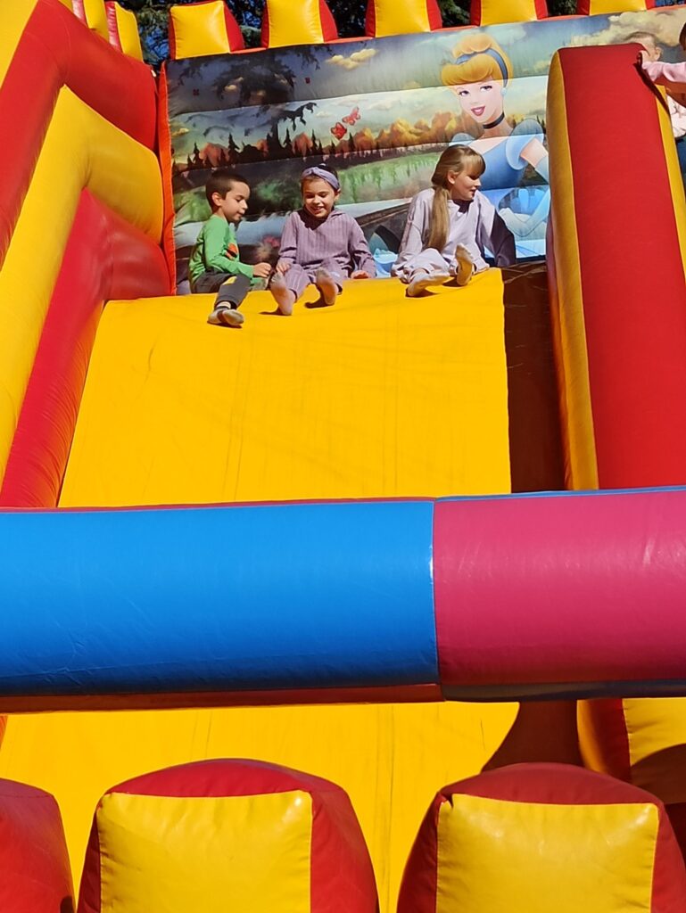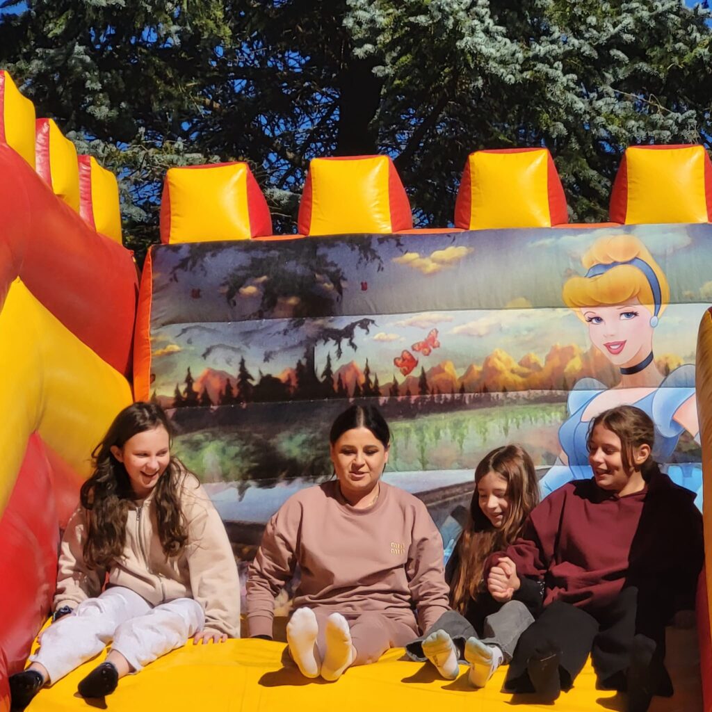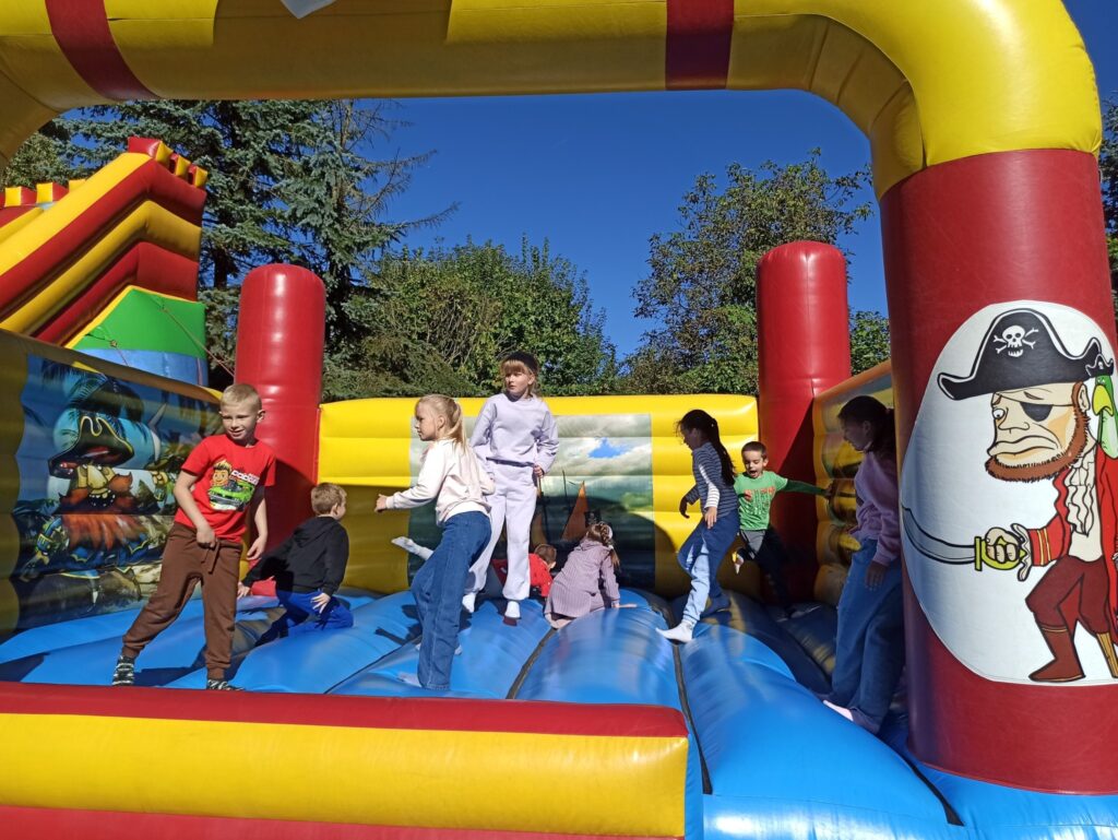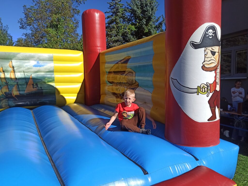 На щастя погода була чудовою, тож ми не лише каталися і скакали на надувних атракціонах, а й скуштували печені на вогнищі ковбаски, поласували різними солодощами. Атмосфера була веселою й дружньою.