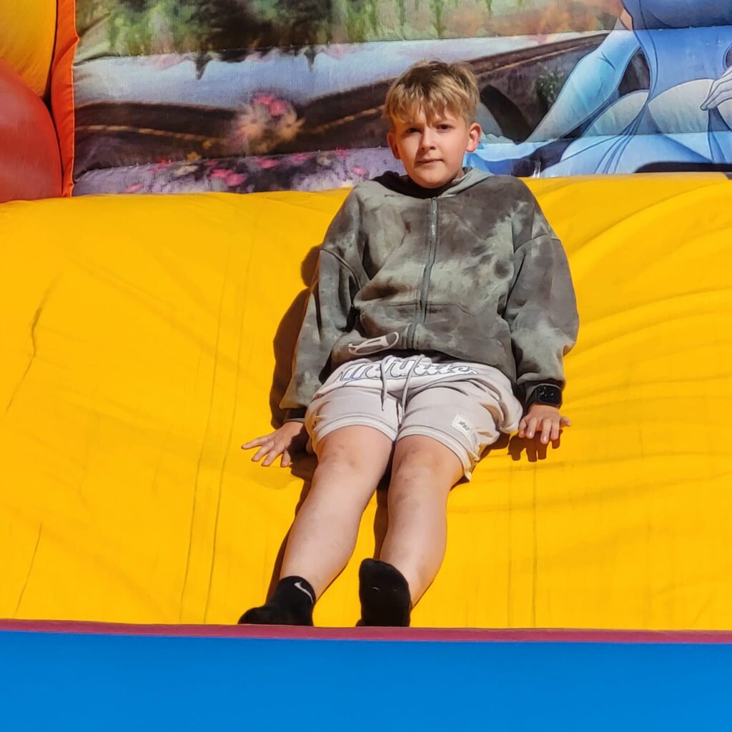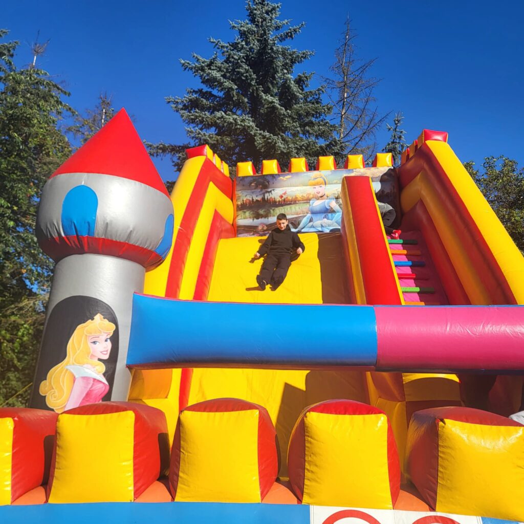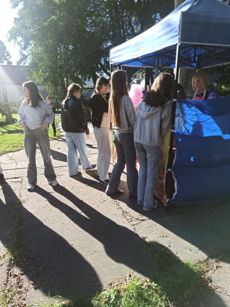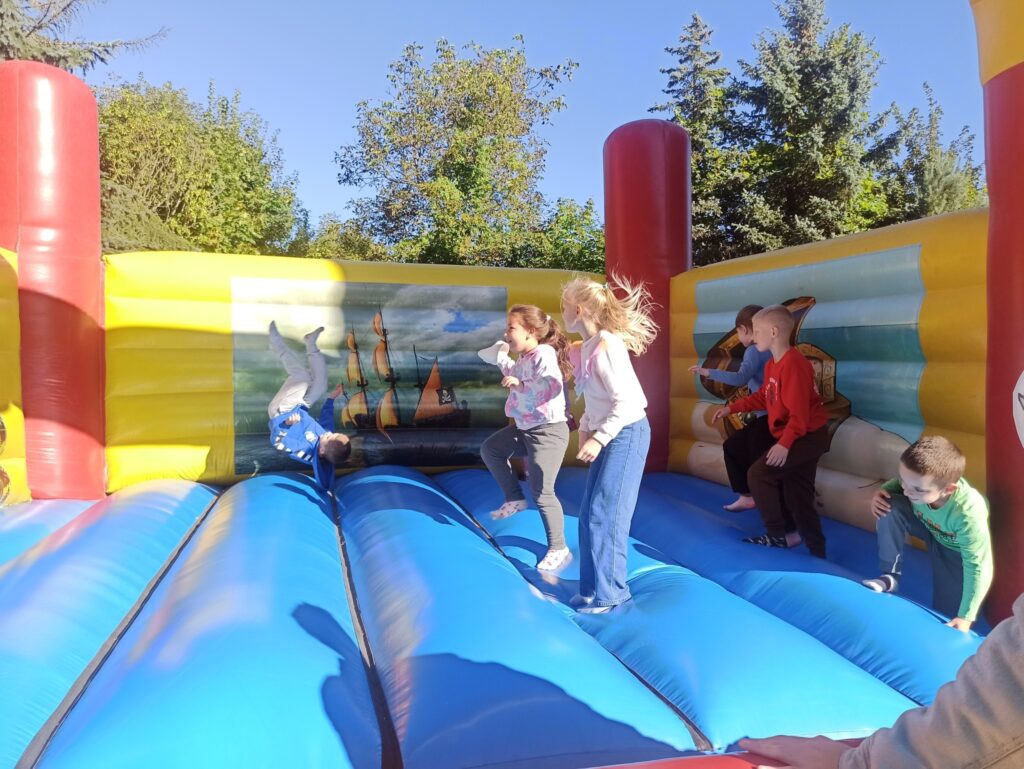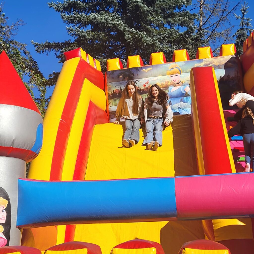 На щастя погода була чудовою, тож ми не лише каталися і скакали на надувних атракціонах, а й скуштували печені на вогнищі ковбаски, поласували різними солодощами. Атмосфера була веселою й дружньою.