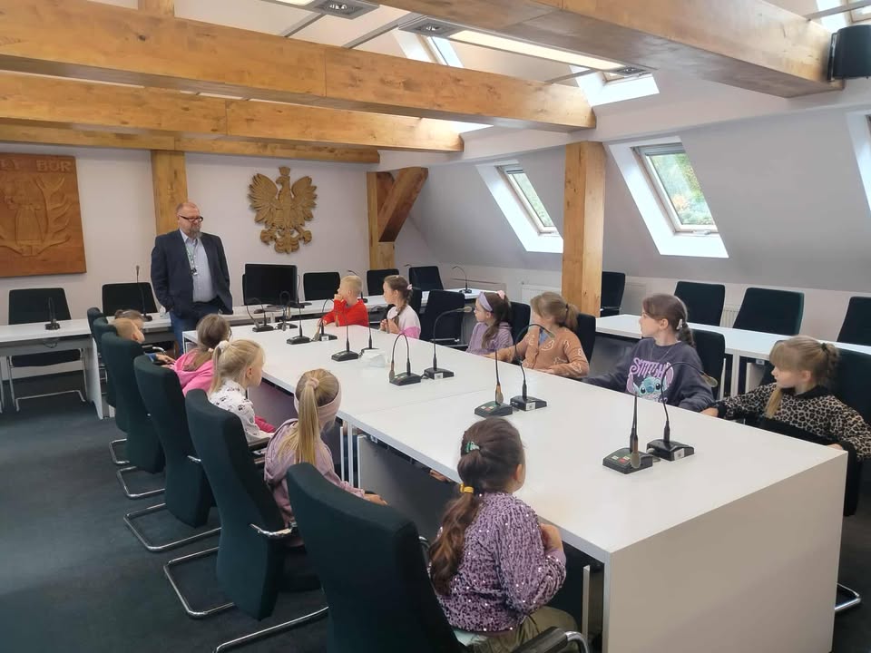 AktualnościGaleria Екскурсія до міської ратуші Білого Бору adminek 9 października, 202510 października, 2025 Сьогодні найменші учні початкової школи №2 імені Тараса Шевченка з Білого Бору відвідали Міську Раду Білого Бору. Мер розповів дітям про щоденну роботу офісу. Діти відвідали кабінет мера та конференц-зал, де проводяться засідання міської ради.