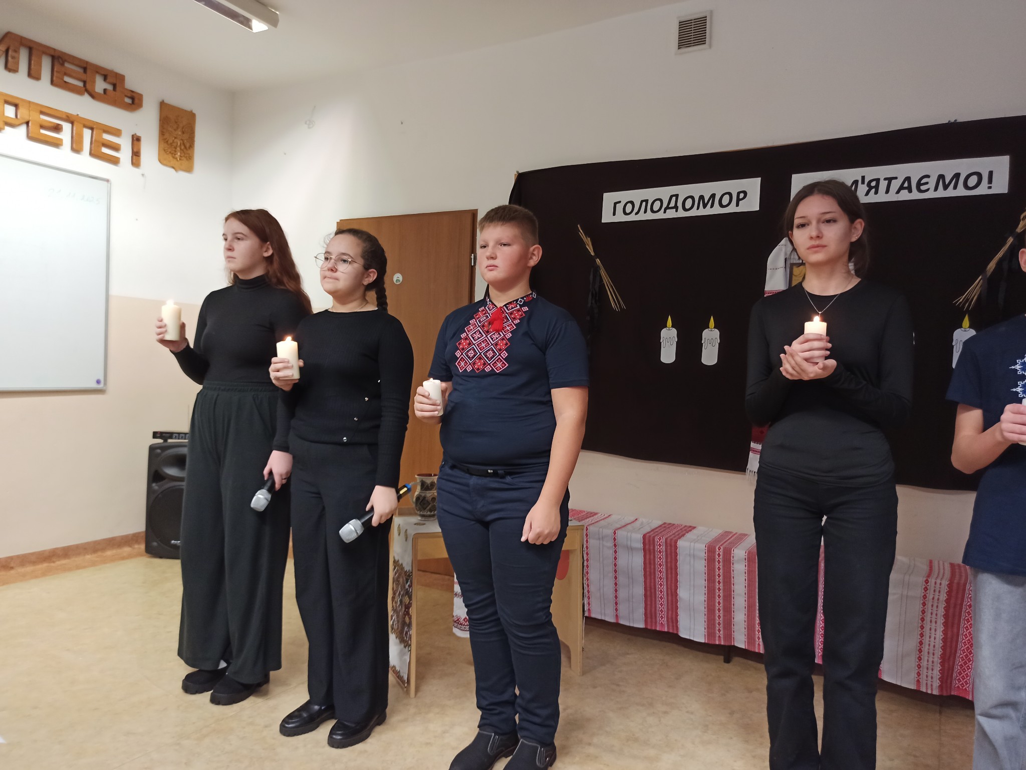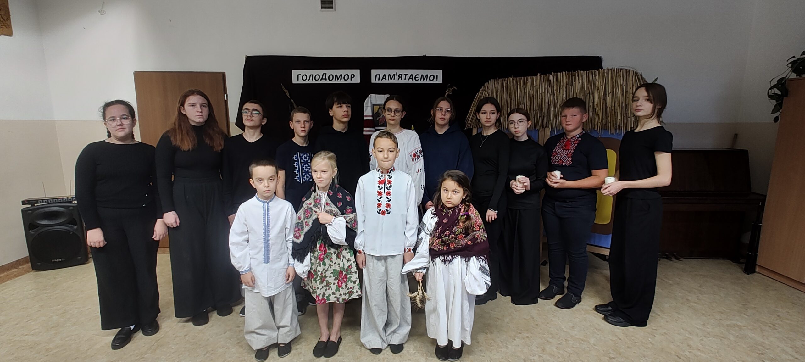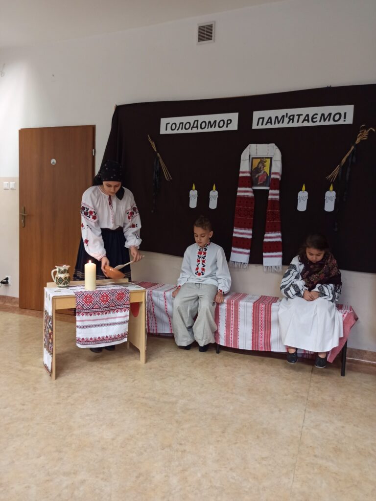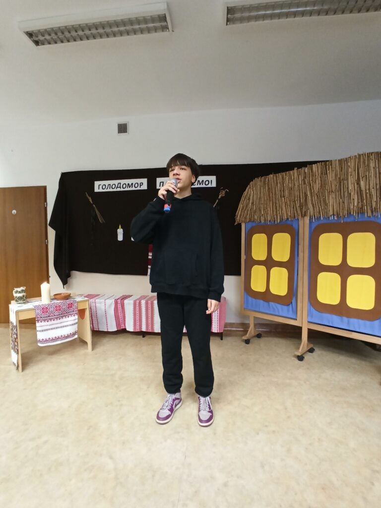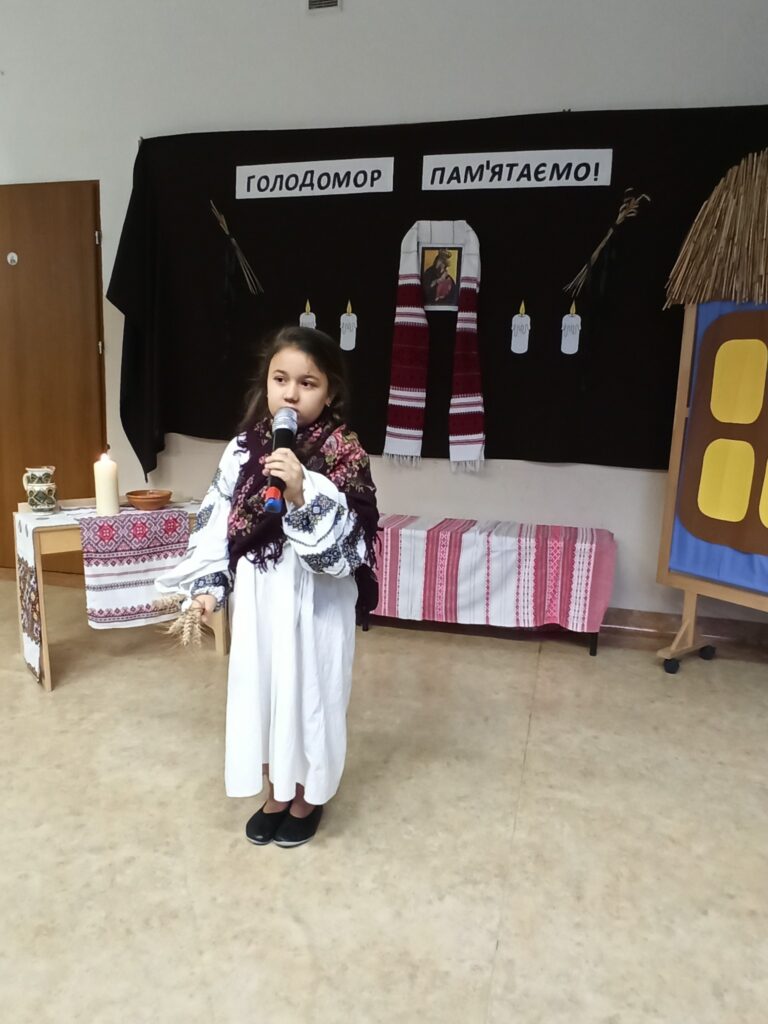 Однією з найзворушливіших частин програми стала театралізована сценка. Діти відтворили епізод життя української родини у роки Голодомору: боротьбу за виживання, втрату близьких. Їхній виступ передав атмосферу трагедії через щирі емоції.