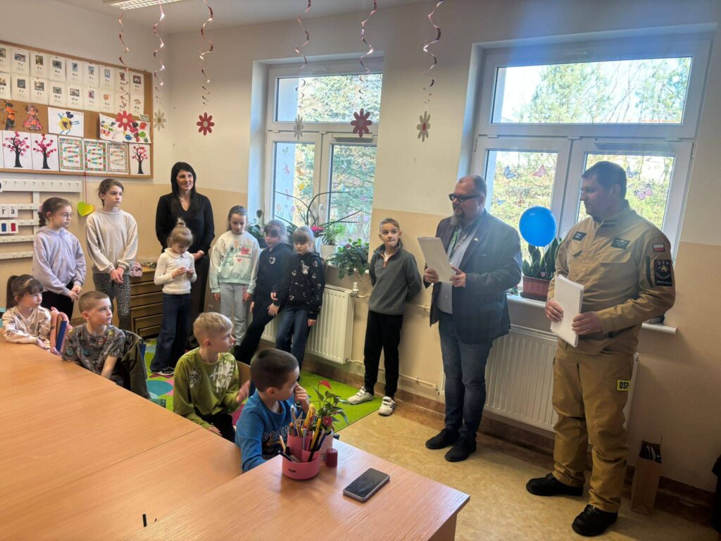 23 березня нашу школу відвідали мер міста Білий Бір Павел Міколаєвський та комендант міської пожежної охорони Рафал Нікель, щоб вручити дітям дипломи за участь у конкурсі художніх робіт під назвою «Пожежники служать іншим не лише під час пожеж». Орест Добжанський з класу «0» отримав почесну відзнаку, а його робота пройшла кваліфікацію на районний конкурс. Вітаємо!